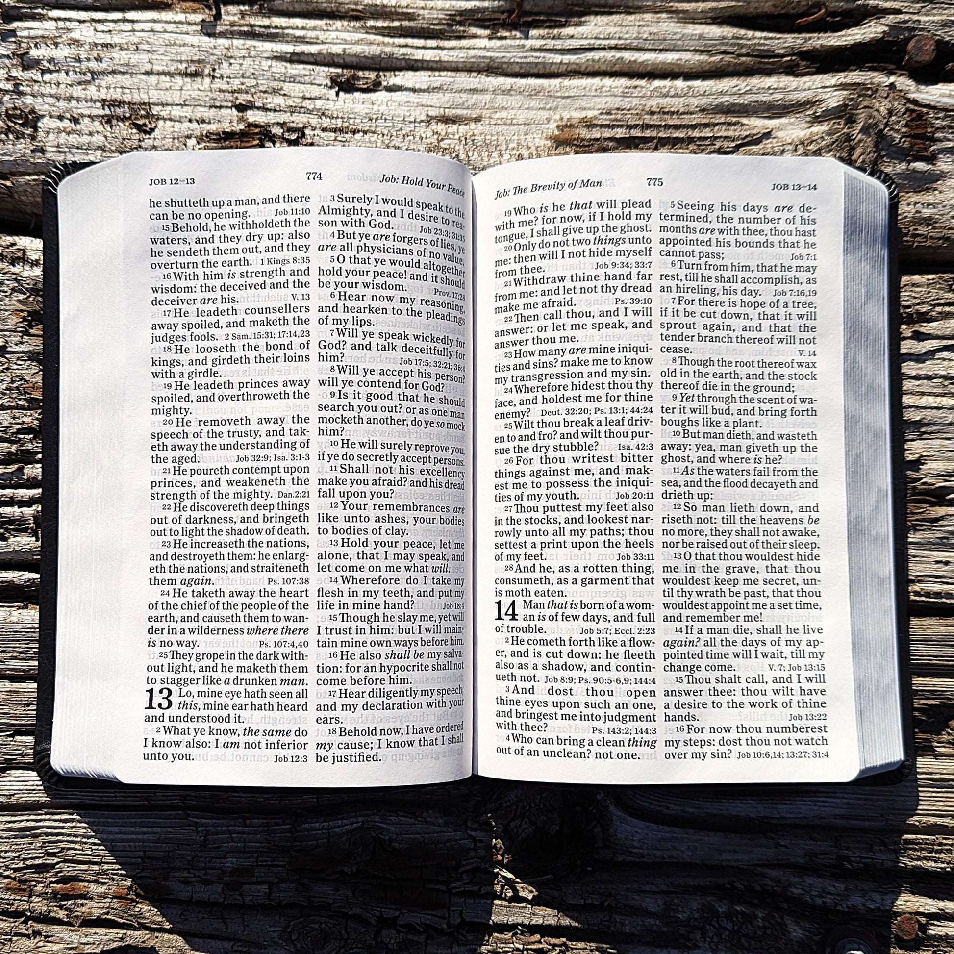 BIBLE FEATURES – King James Version (KJV) Bible custom laser-engraved with your name! The double-column layout keeps it portable at just 8.75”x6”x1.5”. Features a satin ribbon marker, silver gilded pages, red-letter text for the words of Jesus, and a leather-like cover lies flat when open. Comfortable 11.25-point font size for easy reading.