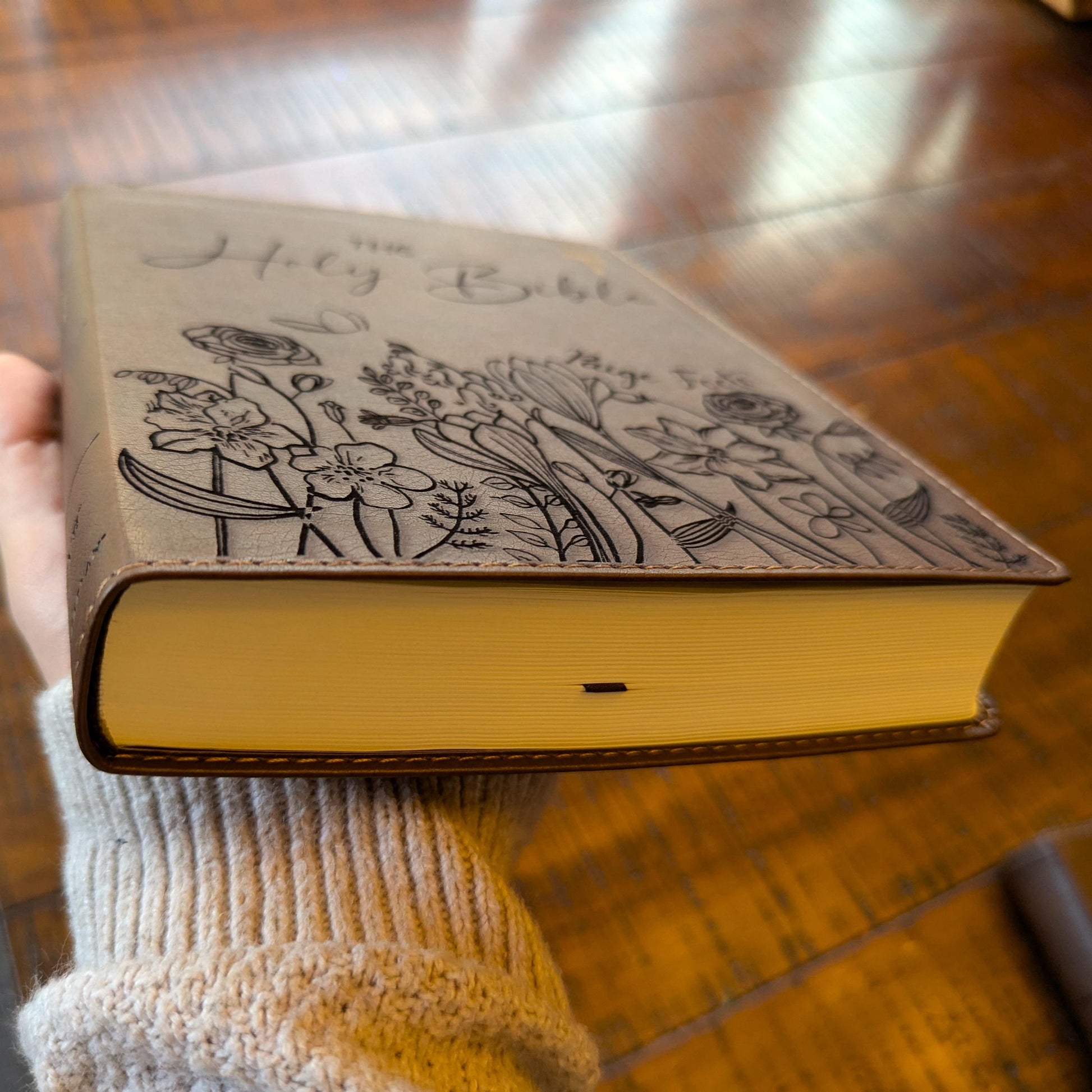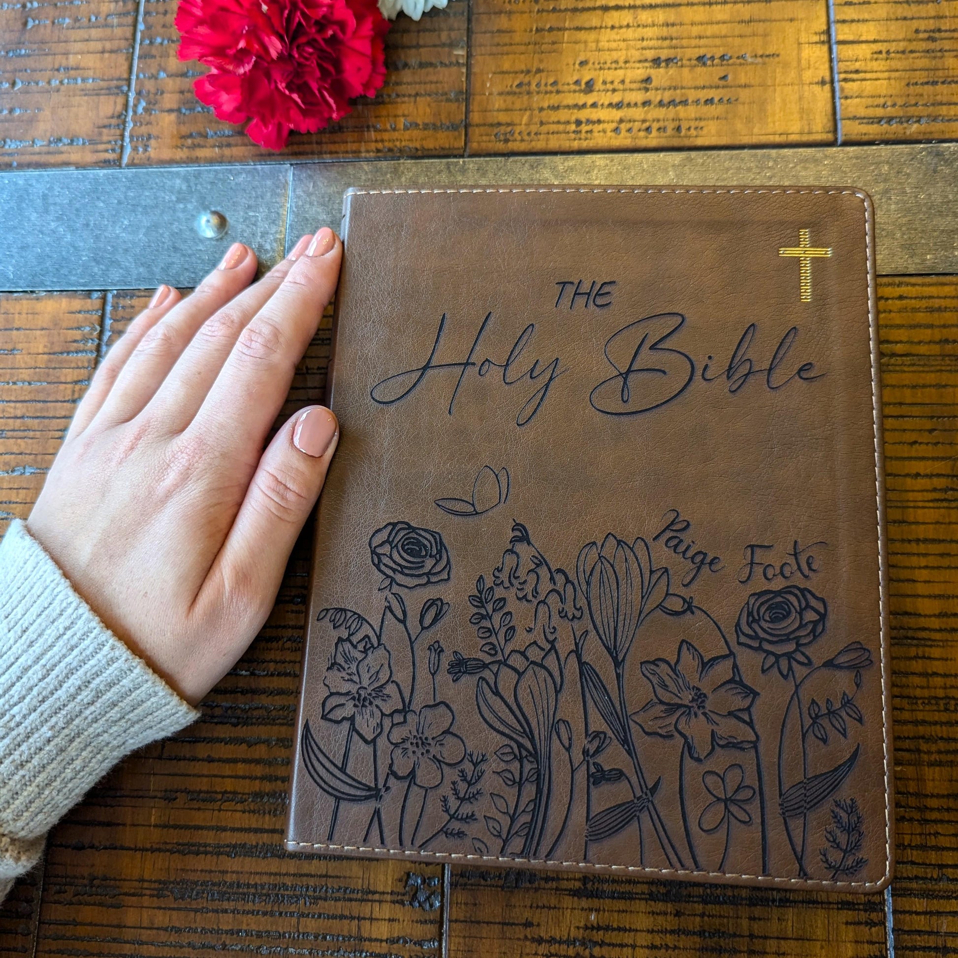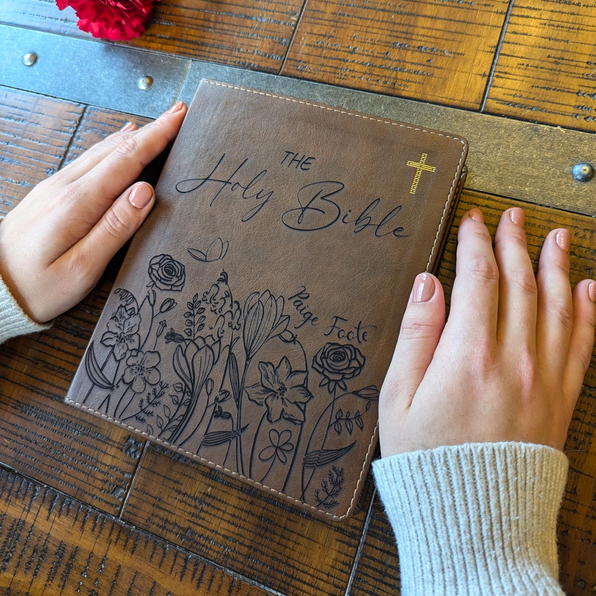 Personalized NIV Journaling Bible | New International Version | Custom Engraved Name | Easy-to-read Study Bible | Flowers Christian Gift