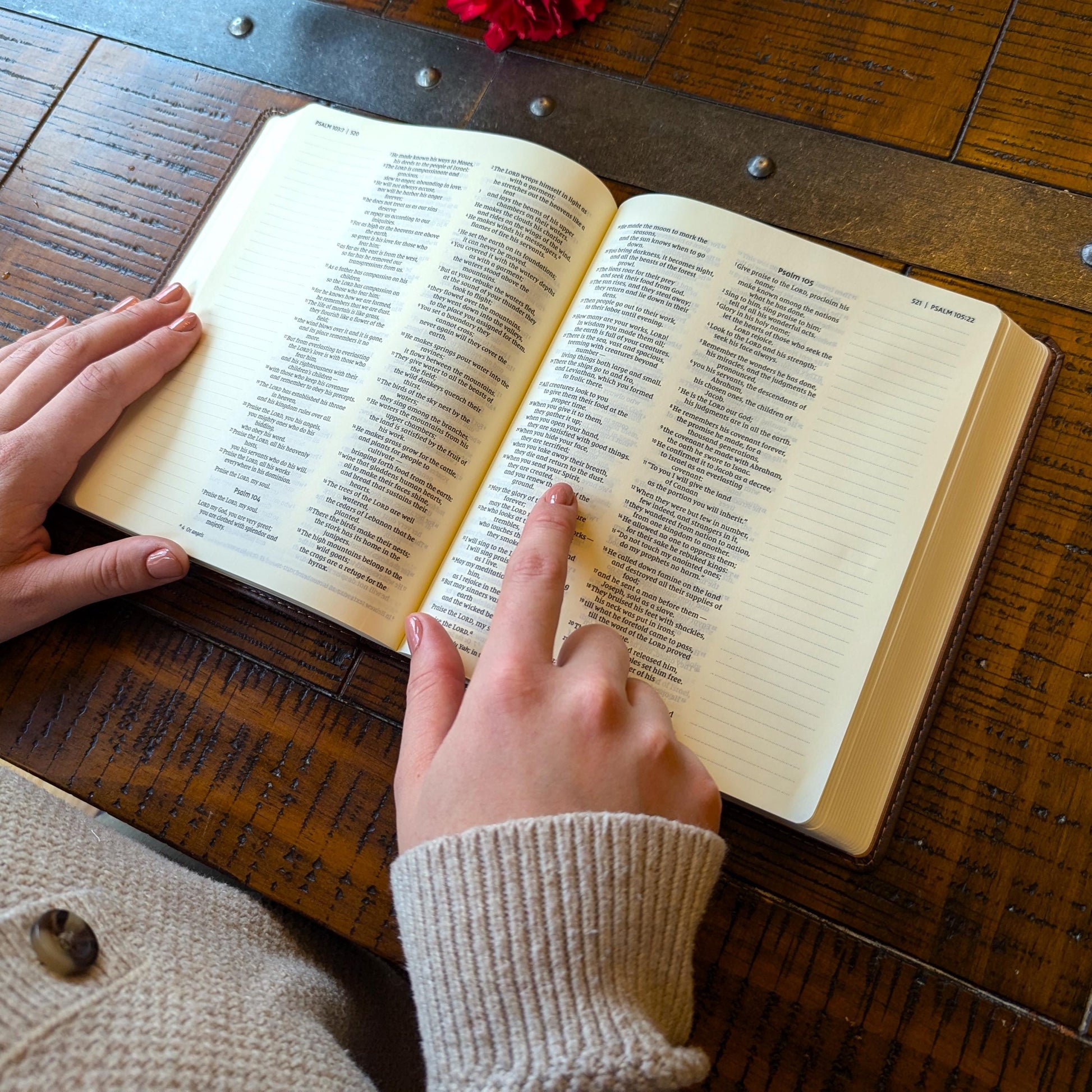 Crafted to Perfection, our Bibles design is appealing from the beautiful leather-like cover to the thick cream-colored pages that are nice on the eyes. The easy to read double-column text with lightly lined wide margins for journaling are perfect to reflect on God’s Word and enhance your study.