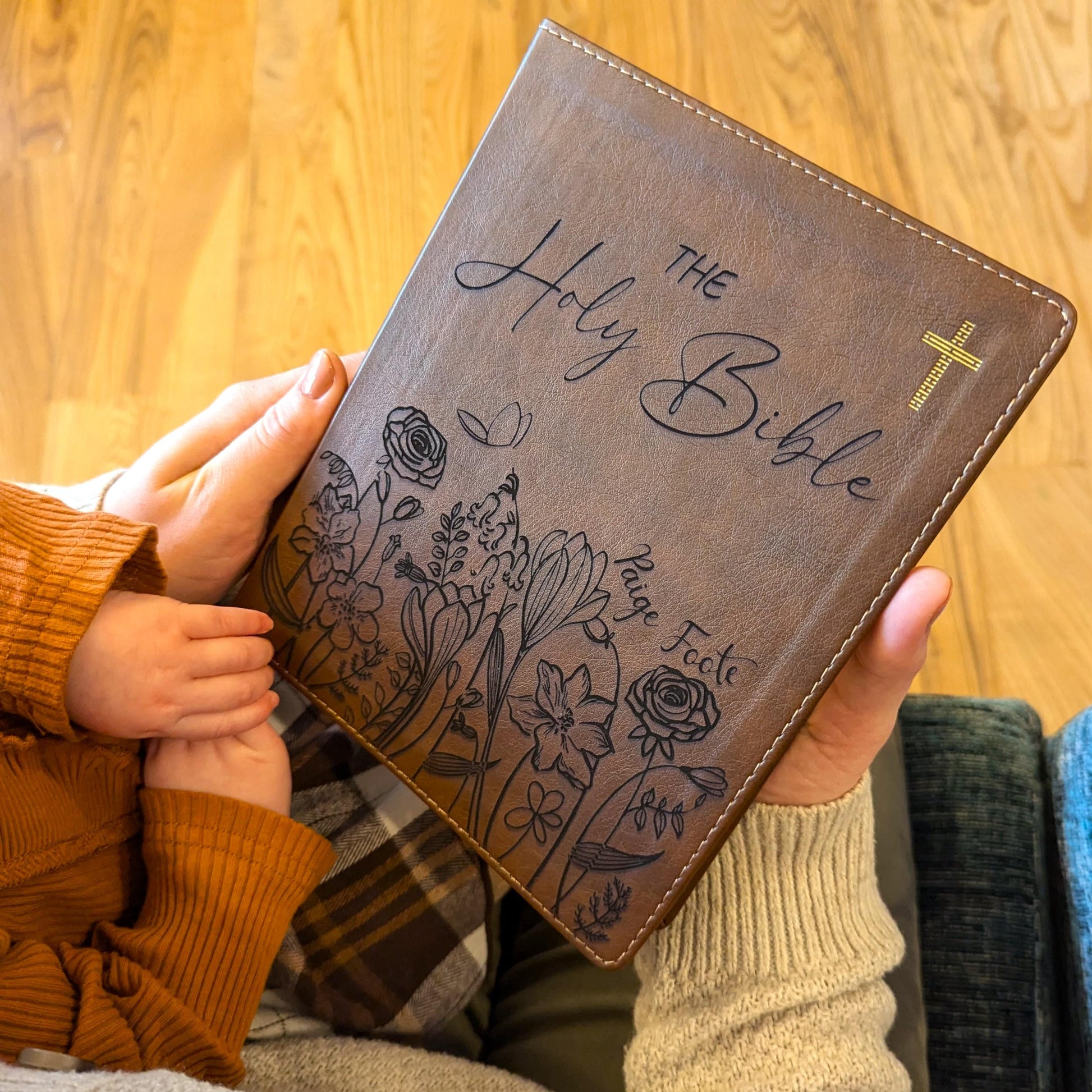 WHY CHOOSE US? We are a small, family-owned business dedicated to providing exceptional craftsmanship and friendly, fast service. Each Bible is engraved with care and shipped promptly, ensuring a thoughtful and personal gift experience.