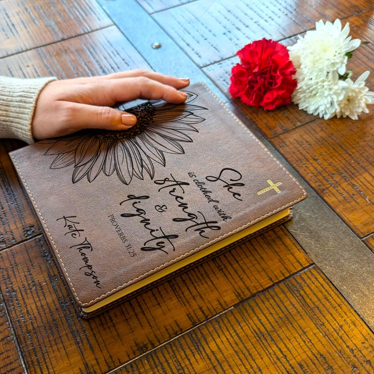 Personalized NIV Journaling Bible | New International Version | Custom Engraved Name | Women's Study Bible | Sunflower Christian Gift